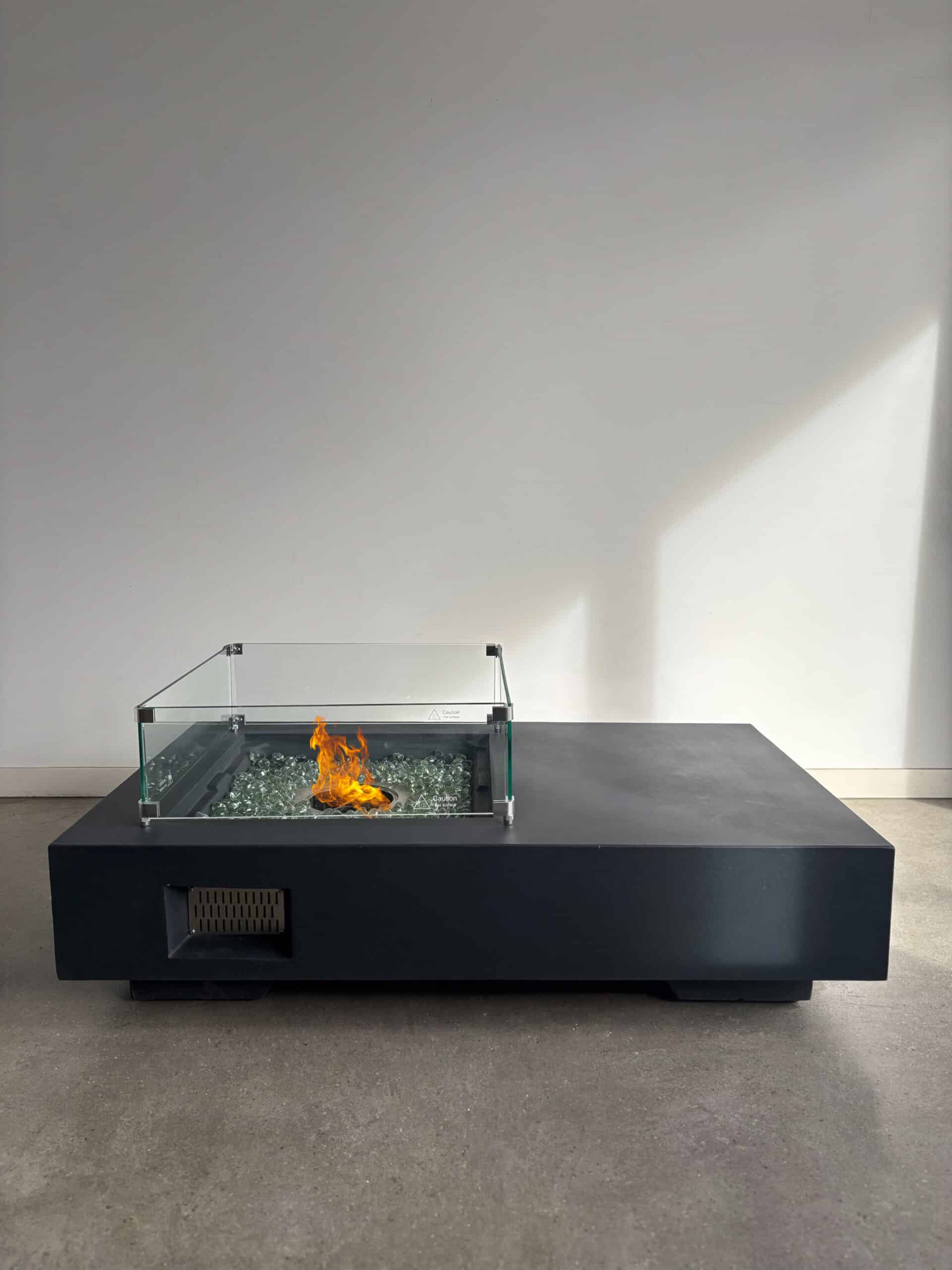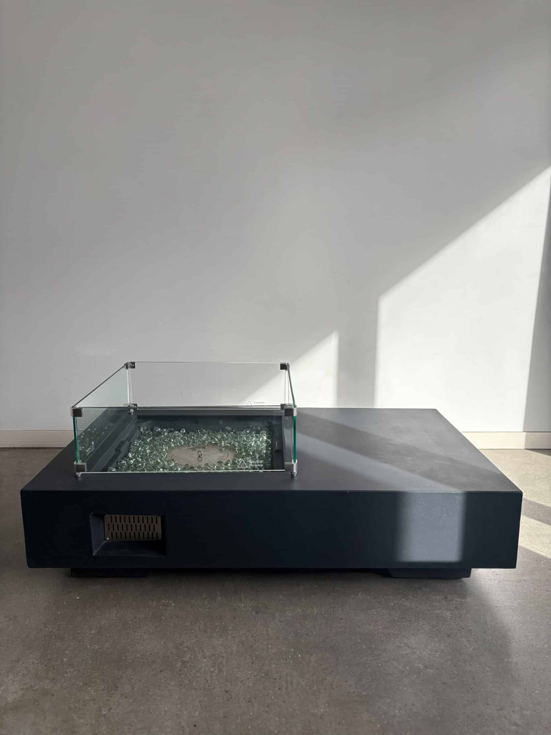 Its minimalist concrete finish and sleek rectangular design make it a stunning fit for modern patios, courtyards, rooftops, and short-stay rentals—adding warmth and luxury without any of the mess.